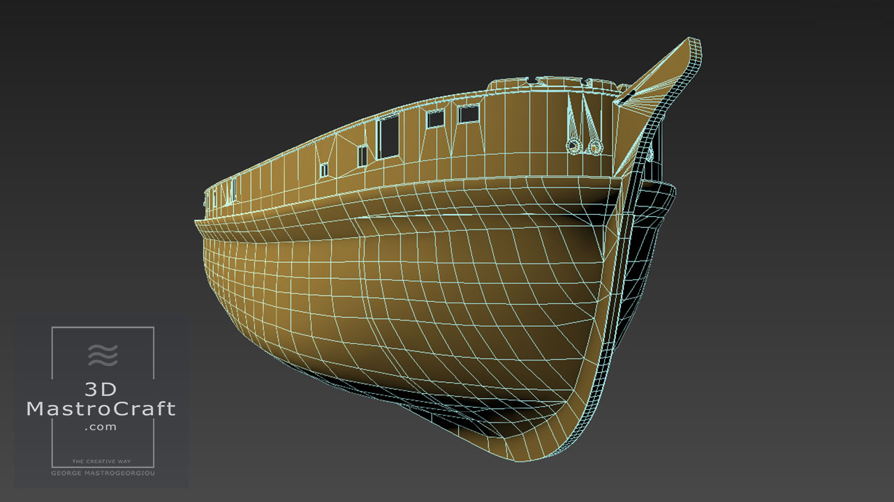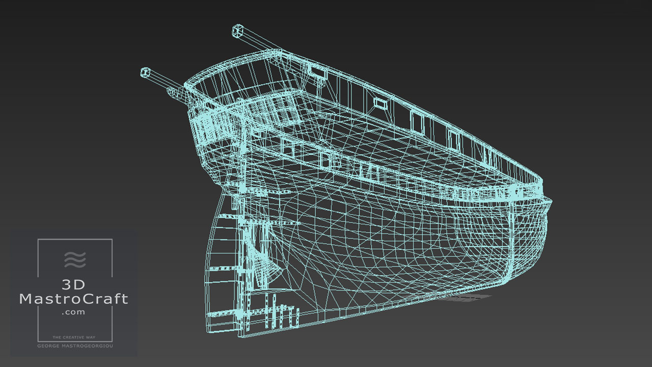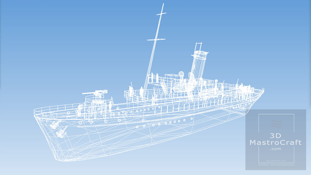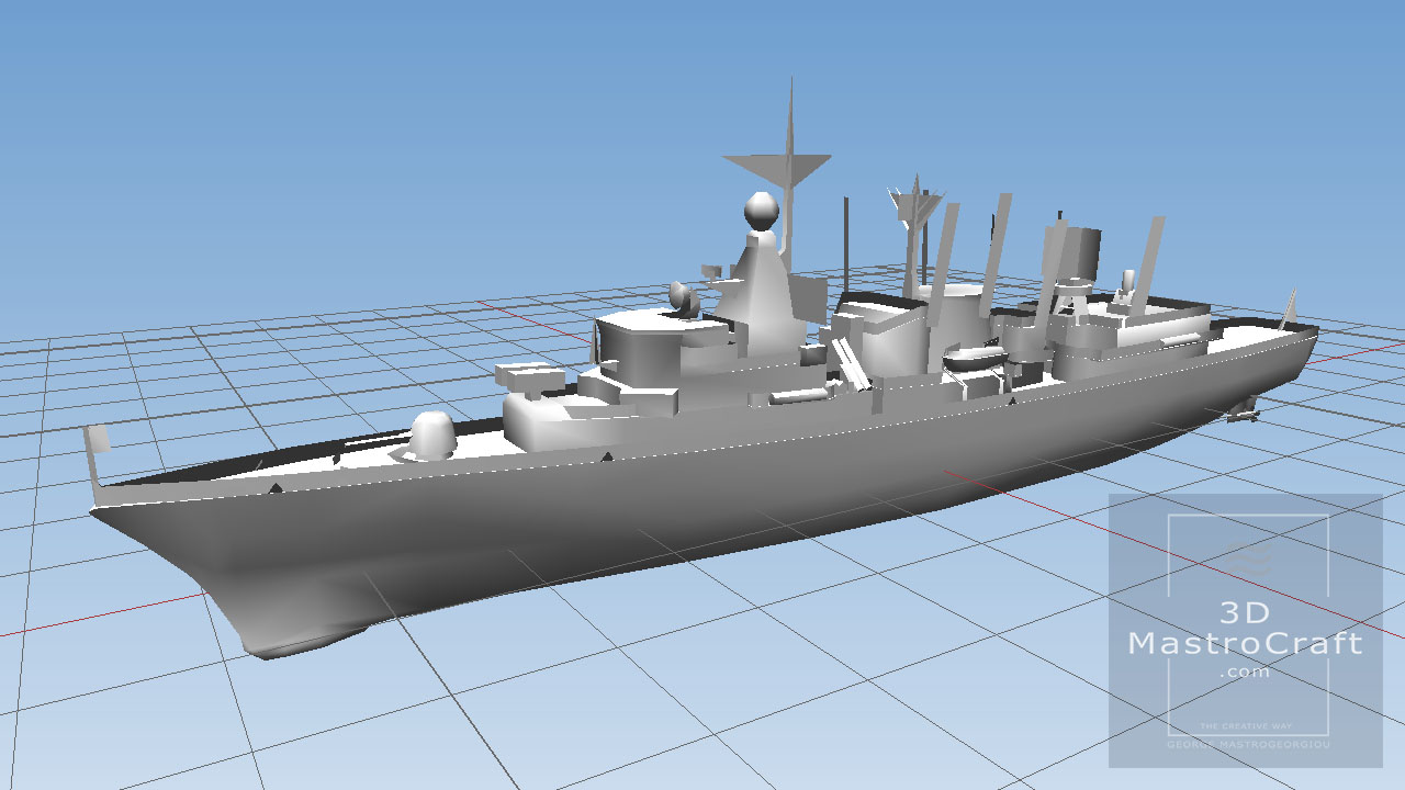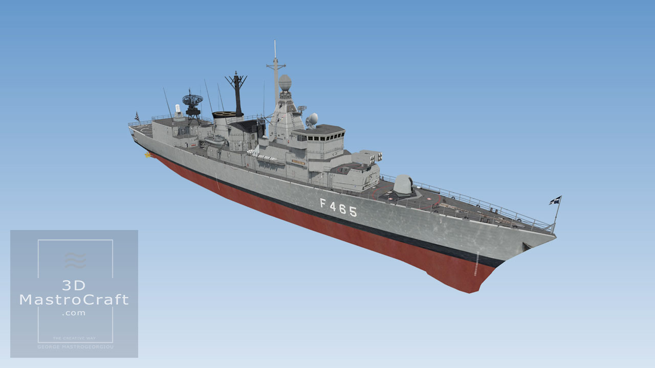 Building Hellenic Ship frigate THEMISTOKLIS (F465) in low polygons for real-time purposes