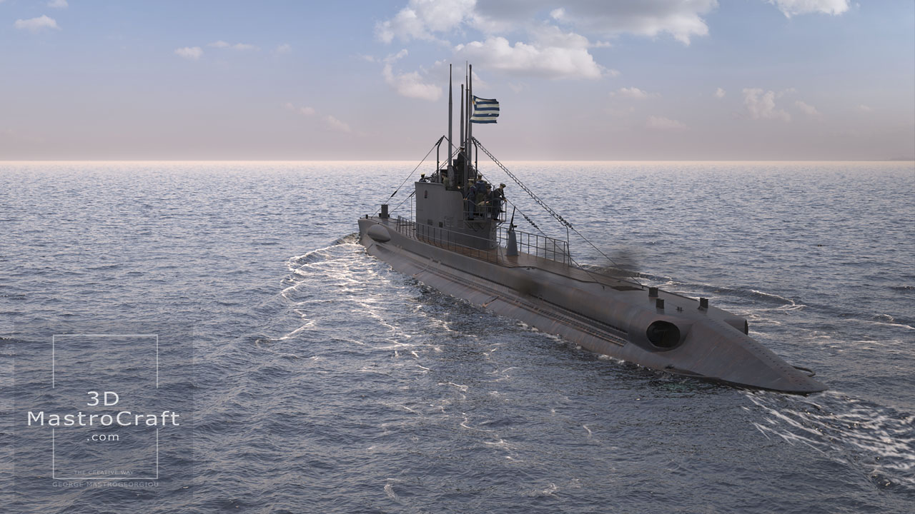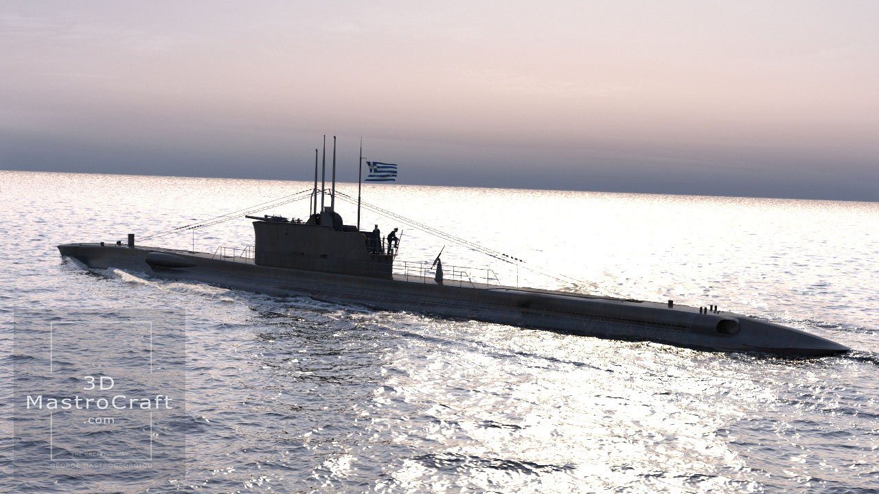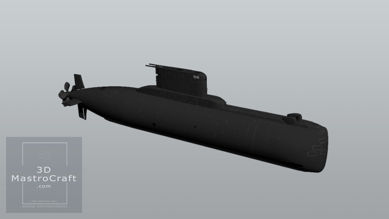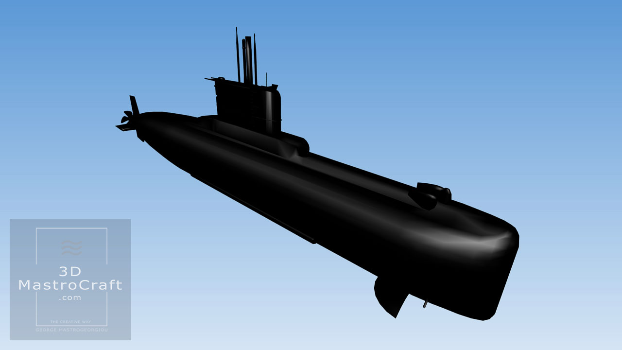 Hellenic Submarine GLAFKOS (S110) in low polygons for real-time purposes