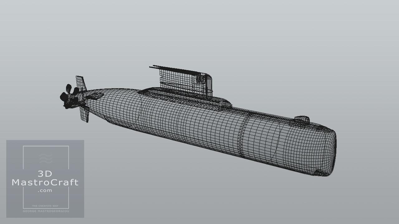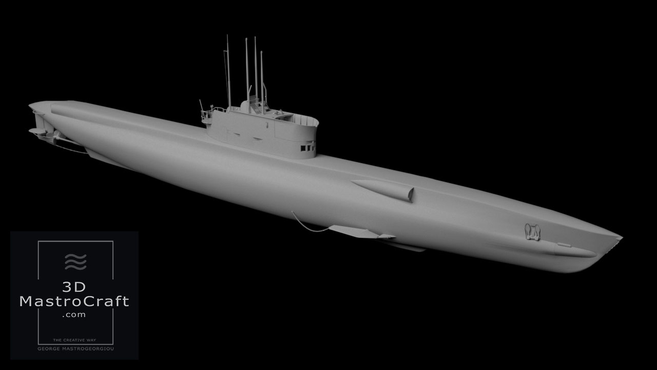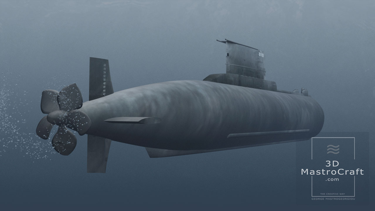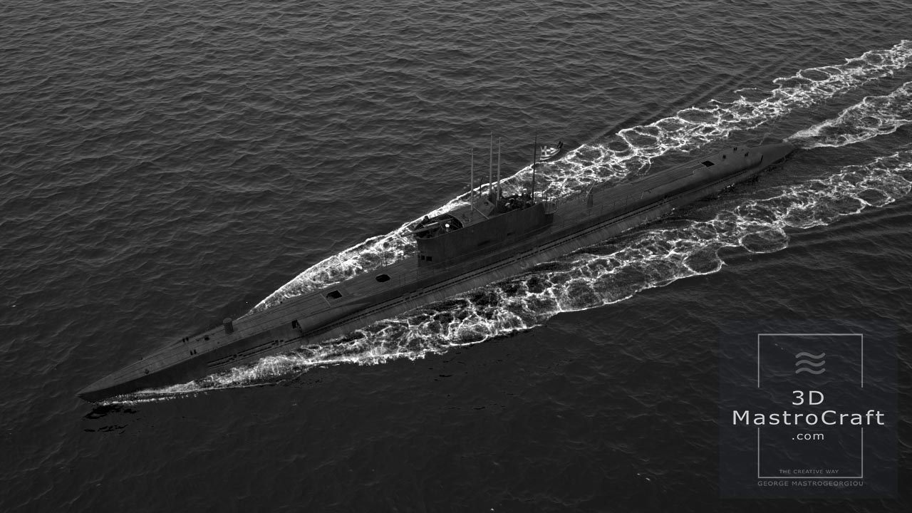 Hellenic Submarine GLAFKOS (S110) in low polygons for real-time purposes