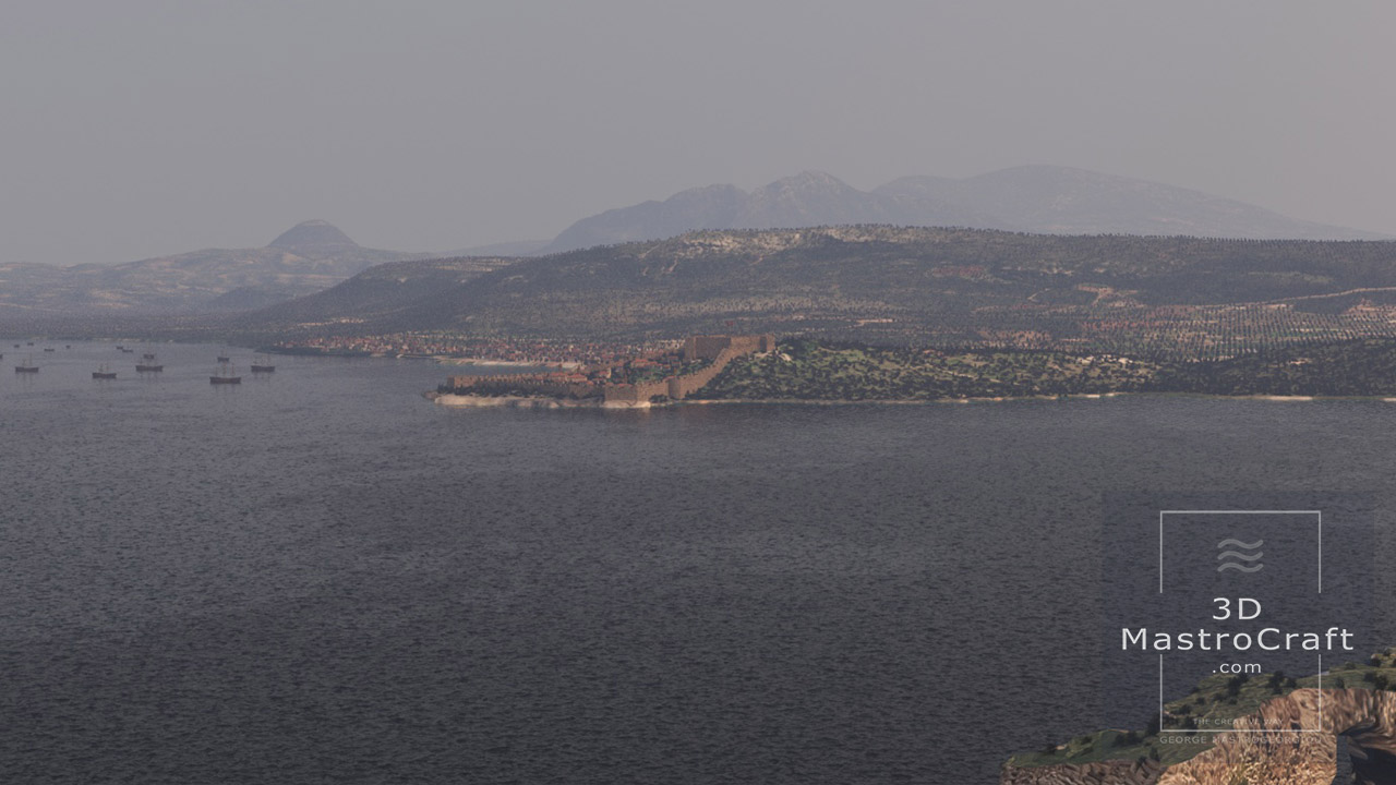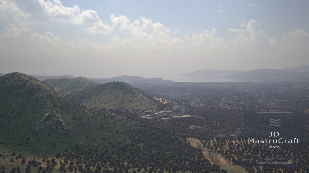 3D representation of the ancient Mycenae town in 1200 B.C.
